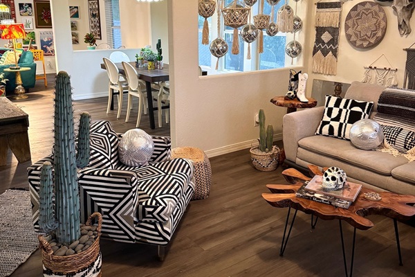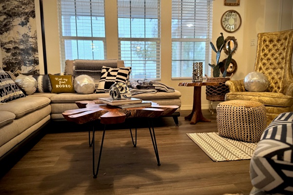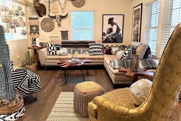 Living room decor curated by famous designer Meghan Fabulous